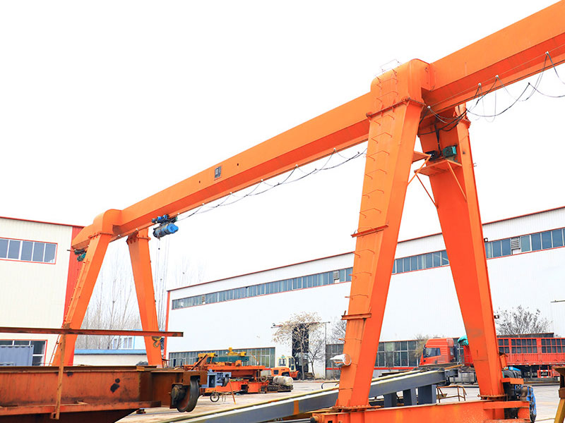 電動葫蘆門式起重機是有軌運行的中小型起重設備,主要由門架(主梁、支腿、下橫梁等)、起升機構、運行機構及電控部分組成,以電動葫蘆作為起升機構,工作時沿主梁工字鋼下翼緣運行。門架結構分箱形和桁架兩種,箱形工藝好,制作方便;桁架自重輕,抗風能力強。整機具有自重輕、結構簡單、安裝維修方便等特點,適用于中小起重量范圍內的廠礦、貨場及倉庫等室外場所作一般裝卸吊運工作。
