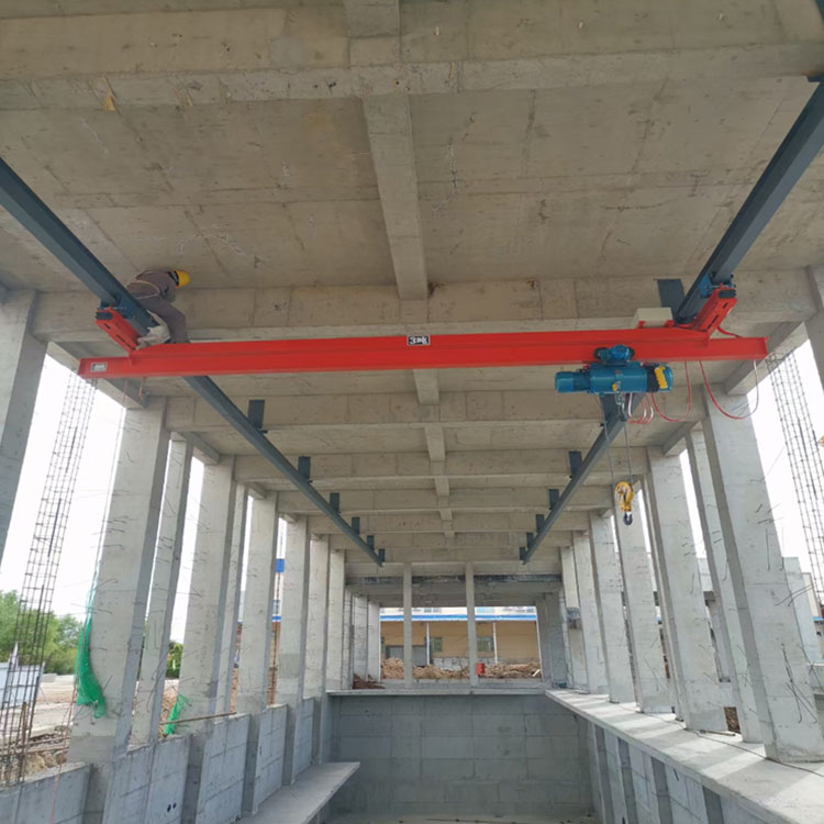 電動單梁懸掛起重機由鋼板與工字鋼組焊成的主梁、端梁、電動葫蘆及電動跑車組成,懸掛在廠房上部的工字梁軌道上,懸臂長度0.5~1m,電動葫蘆沿主梁工字鋼下翼緣運行,完成物品的吊運工作,具有結(jié)構(gòu)輕巧、安裝維護方便等特點,廣泛應用于生產(chǎn)車間、倉庫及貨場等場所。工作級別為A3-A5。