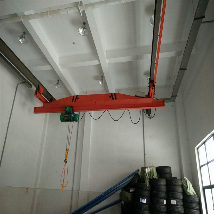 電動單梁懸掛起重機由鋼板與工字鋼組焊成的主梁、端梁、電動葫蘆及電動跑車組成,懸掛在廠房上部的工字梁軌道上,懸臂長度0.5~1m,電動葫蘆沿主梁工字鋼下翼緣運行,完成物品的吊運工作,具有結(jié)構(gòu)輕巧、安裝維護方便等特點,廣泛應(yīng)用于生產(chǎn)車間、倉庫及貨場等場所。工作級別為A3-A5。